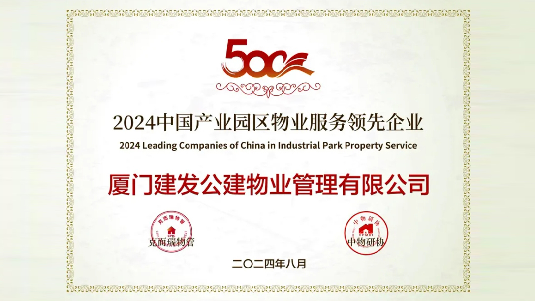 8月22日,2024中國物業(yè)服務企業(yè)綜合實力研究成果發(fā)布會在上海舉辦。建發(fā)物業(yè)旗下怡家園(廈門)物業(yè)管理有限公司榮獲“2024中國物業(yè)服務企業(yè)綜合實力20強第17名”及“2024中國國有物業(yè)服務企業(yè)綜合實力100強”;廈門建發(fā)公建物業(yè)管理有限公司榮獲“2024中國產業(yè)園區(qū)物業(yè)服務領先企業(yè)”。